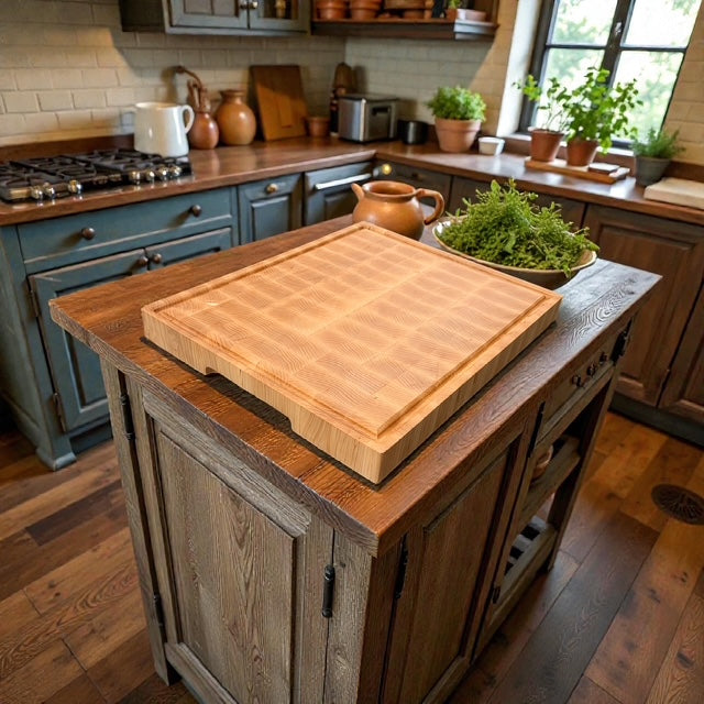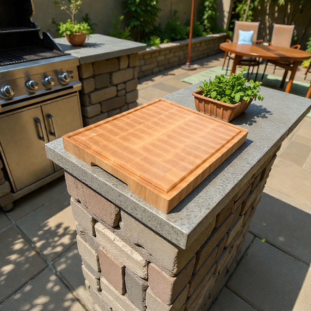 The Butcher is a beefy 2" thick edge grain hard maple cutting board with a generous juice groove. Simple sleek and built to last a lifetime.